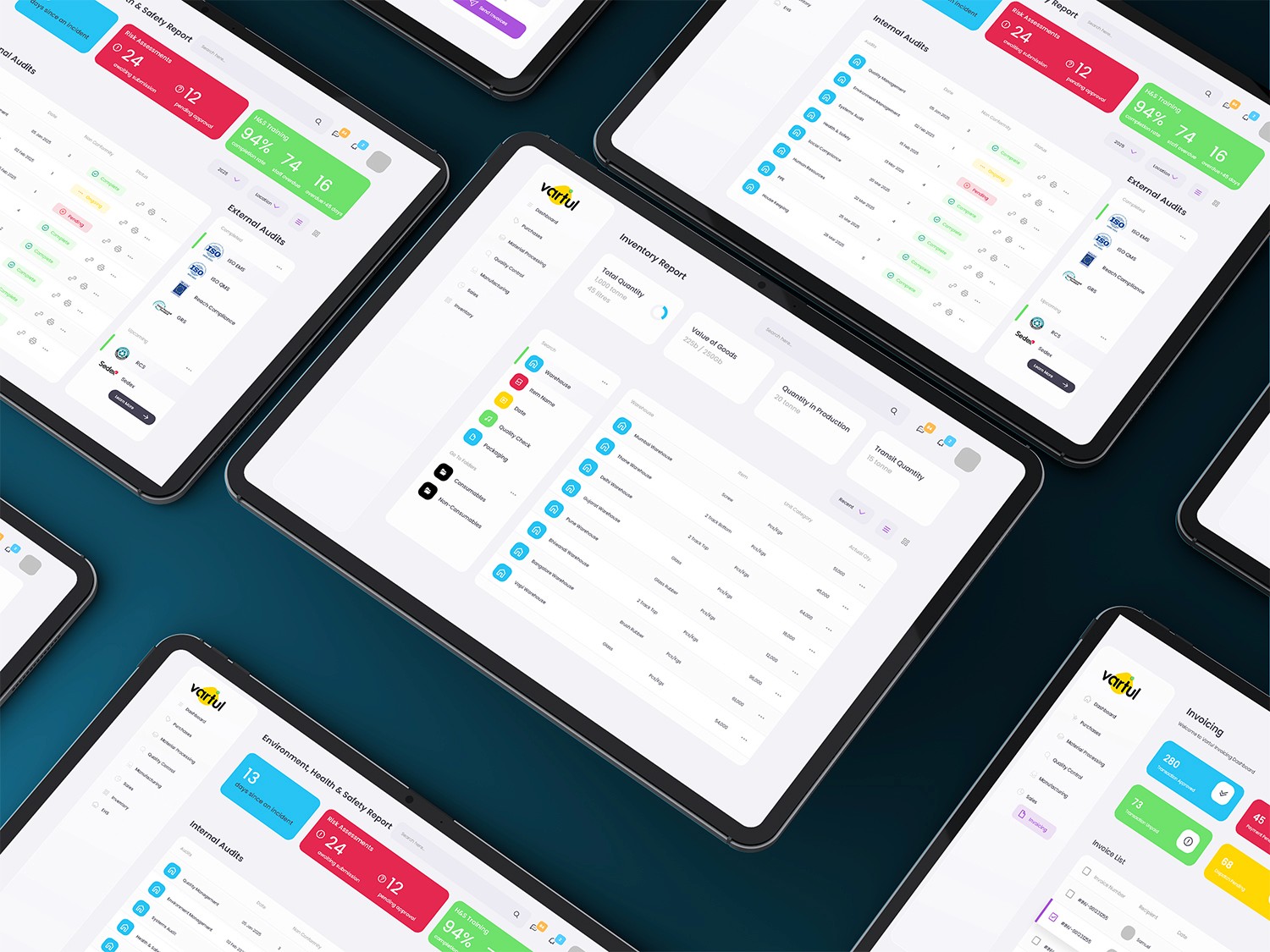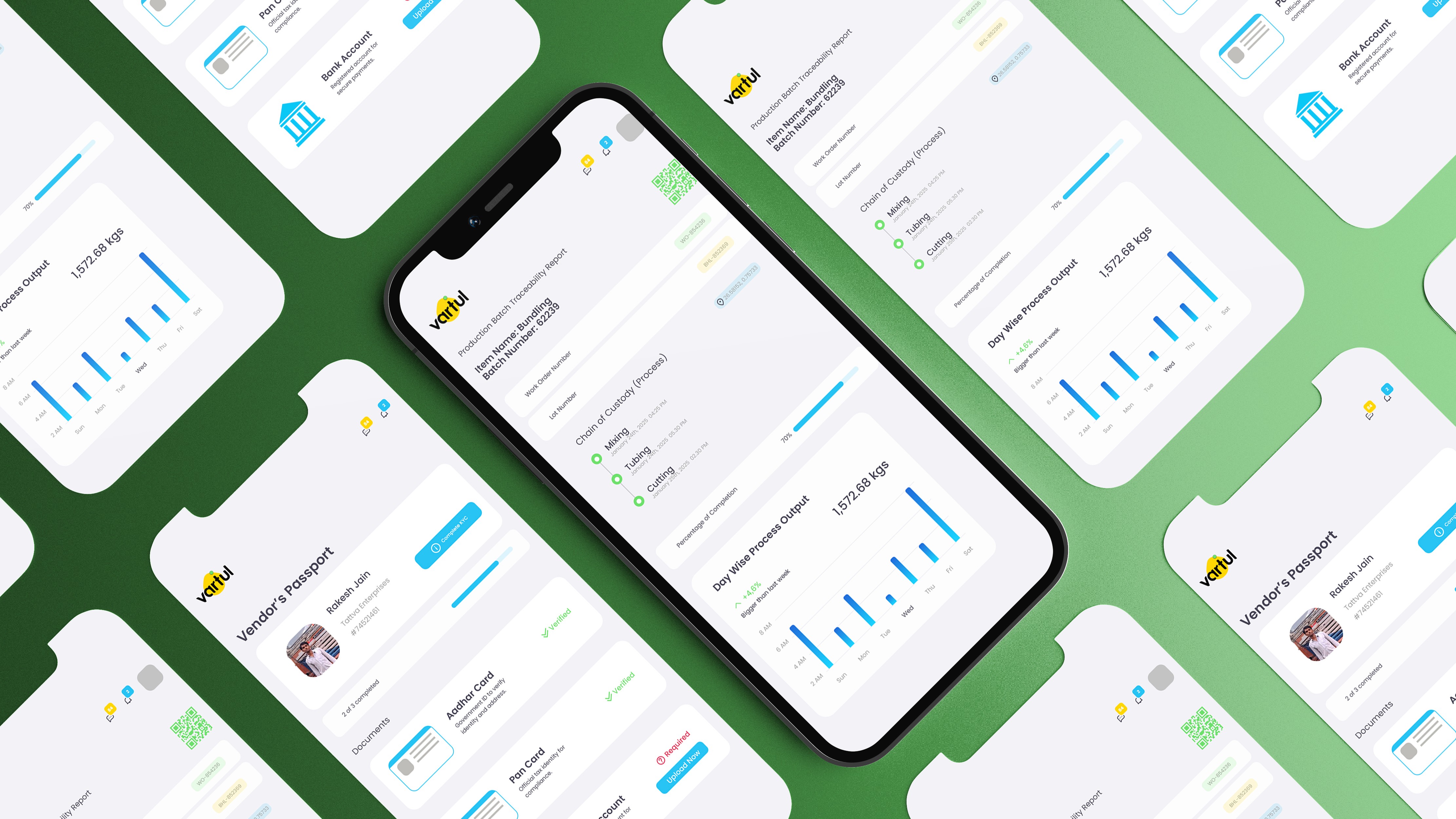 Vartul tracks live financial and non-financial data, inventory, ongoing and completed work, vendors, suppliers, and material movements.